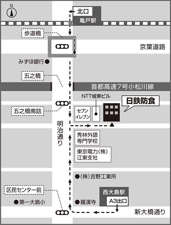 | 都営新宿線 | 西大島駅 | A3出口より徒歩8分 |
